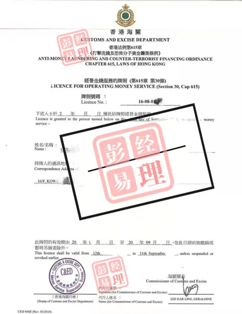 根据香港法例第615章《打击洗钱及恐怖分子资金筹集条例》,所有在香港经营“金钱服务”的个人或实体,均必须向香港海关关长申请并获得金钱服务经营者(MSO)牌照。